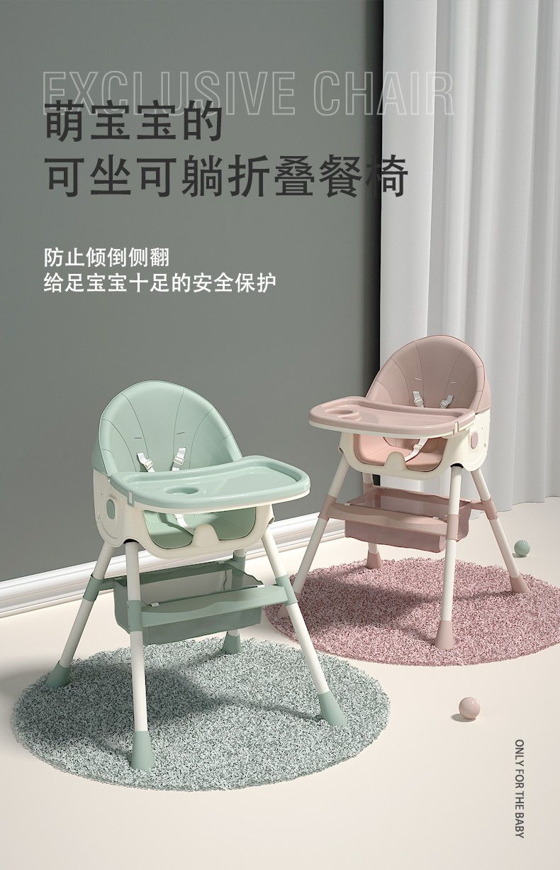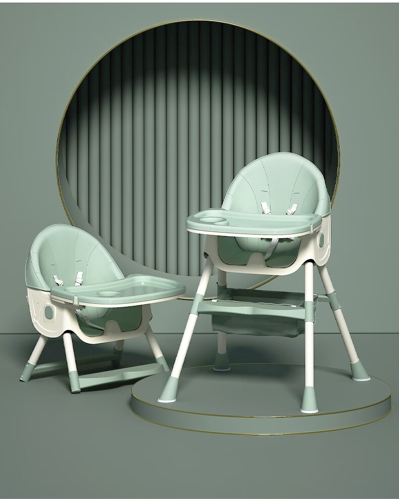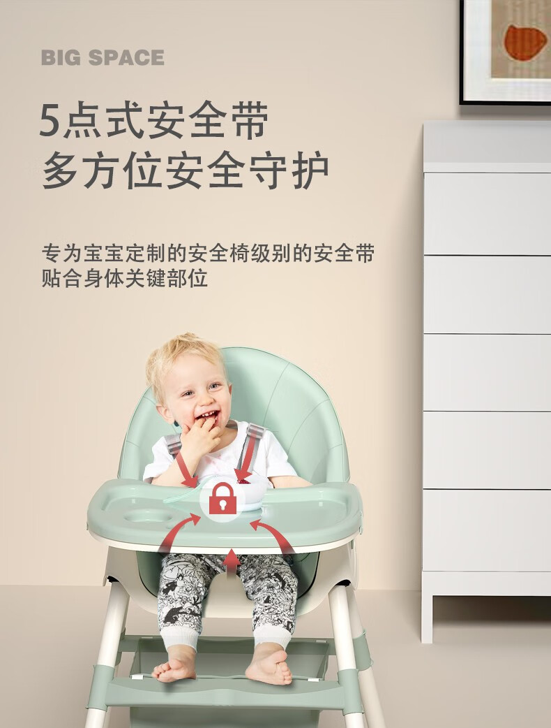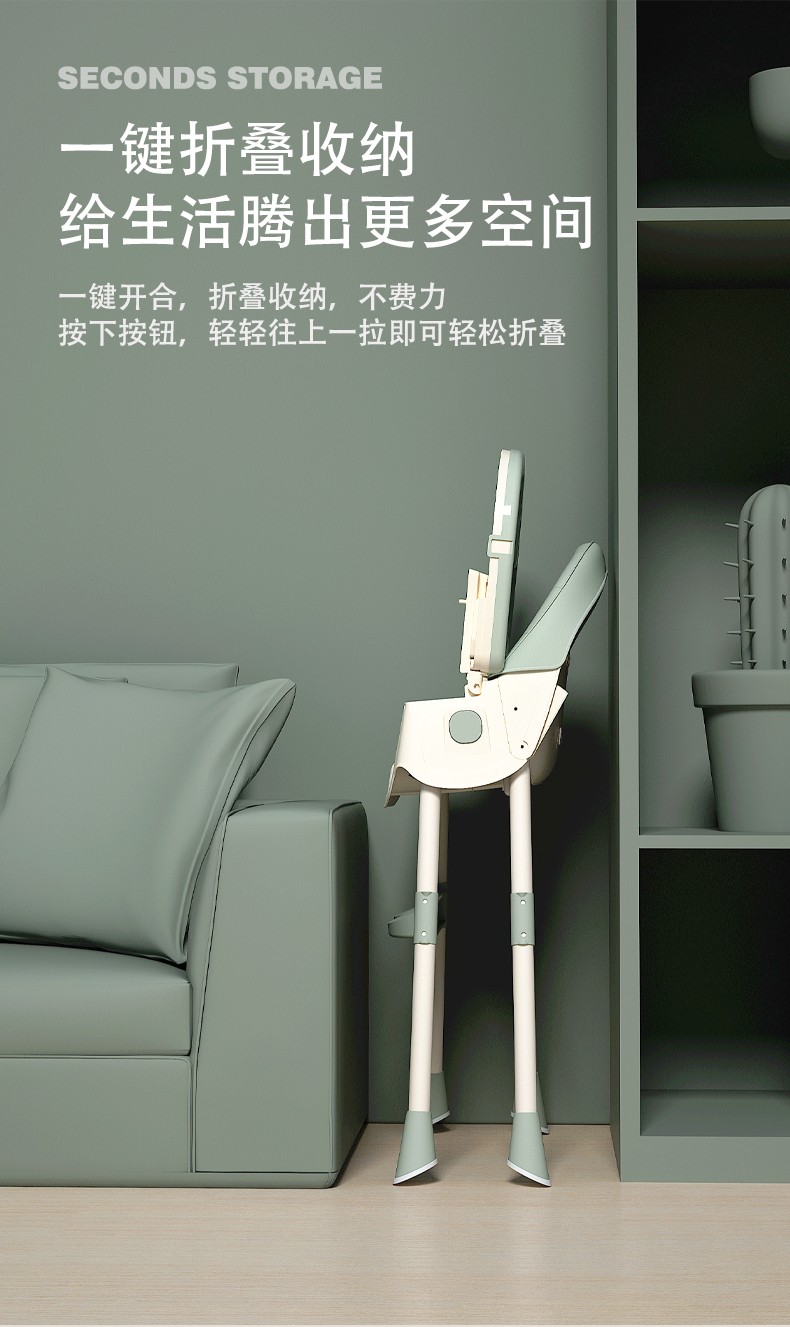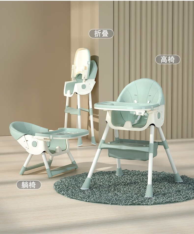 商品名称:嘻优米宝宝餐椅儿童餐桌椅婴幼儿可折叠便携防侧翻多功能可调节吃饭座椅 晨雾绿【一键折叠】【靠背可躺】