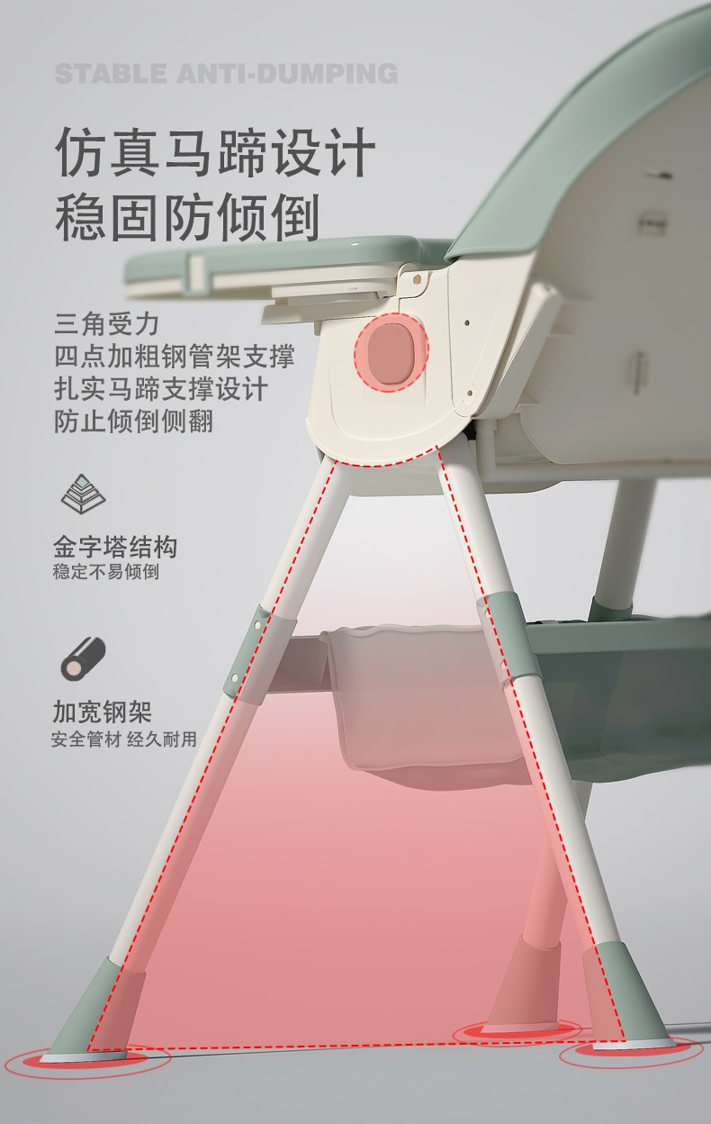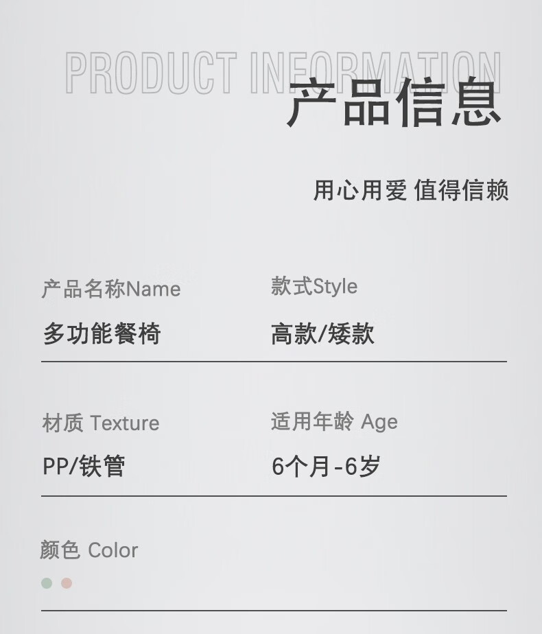 功能:可折叠,便携,可调档,带餐盘,可组装,有安全带